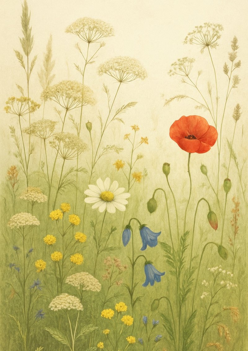 Serene meadow with blooming flowers. https://www.rawpixel.com/image/19645884/serene-meadow-with-blooming-flowersView license