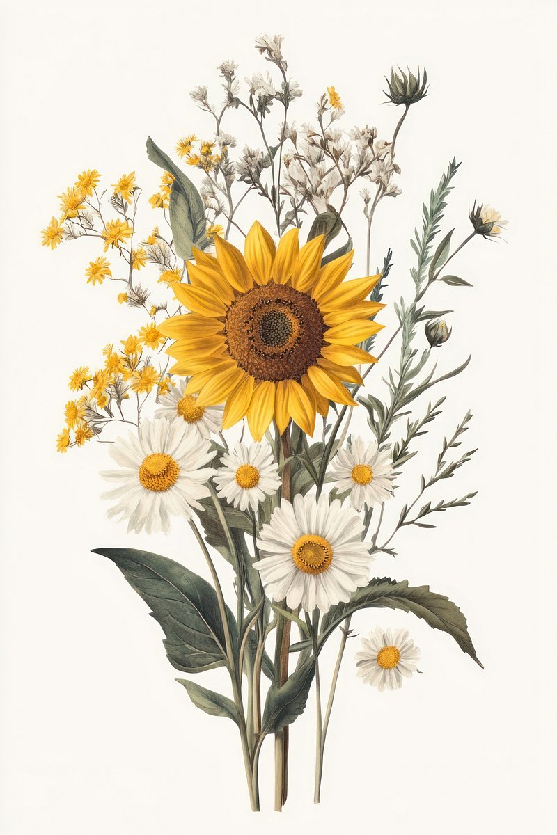 Sunflower flowers daisy illustration. https://www.rawpixel.com/image/18047025/sunflower-flowers-daisy-illustrationView license