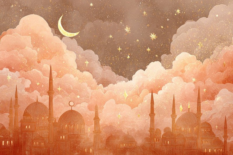Dreamy celestial mosque illustration https://www.rawpixel.com/image/25163031/dreamy-celestial-mosque-illustrationView license