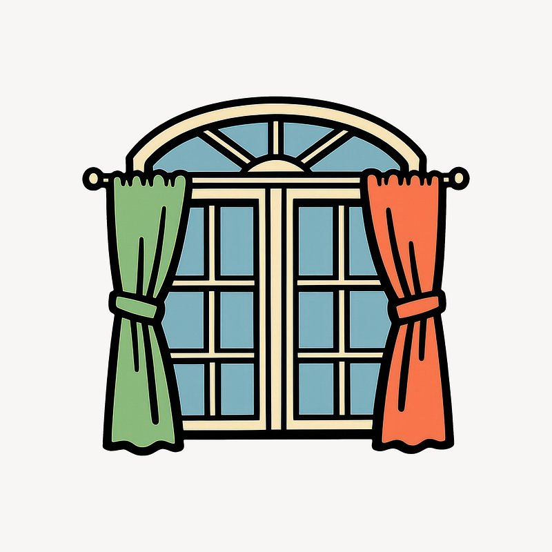 Colorful window with curtains illustration. https://www.rawpixel.com/image/25626516/colorful-window-with-curtains-illustrationView license