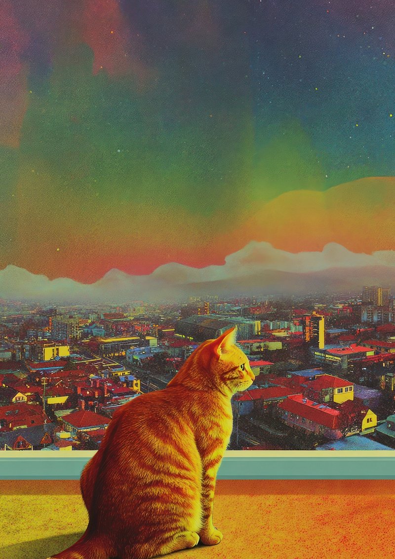 Cat gazing vibrant cityscape sky https://www.rawpixel.com/image/25825974/cat-gazing-vibrant-cityscape-skyView license
