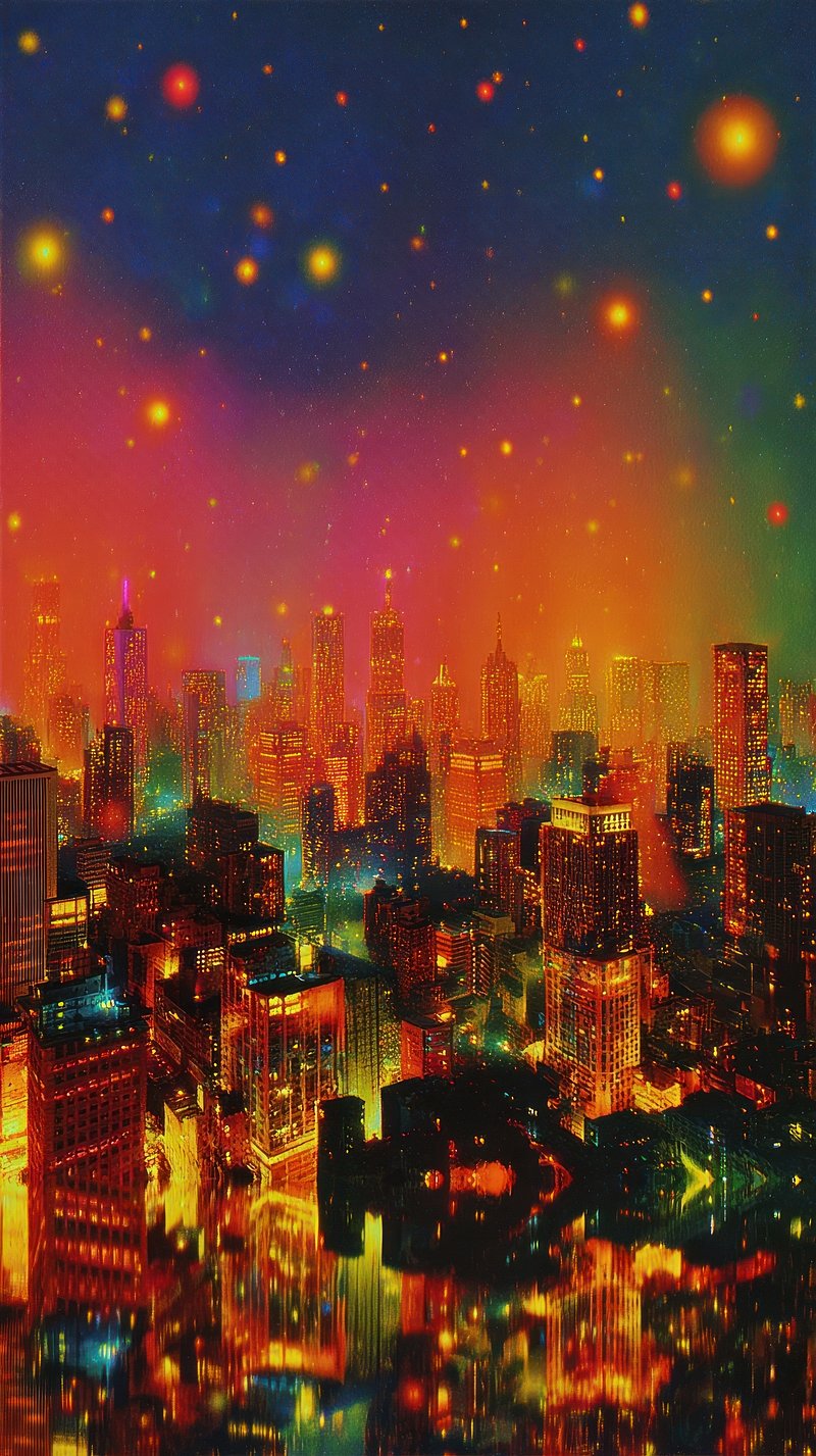 Vibrant cityscape with glowing stars mobile wallpaper https://www.rawpixel.com/image/25770789/vibrant-cityscape-with-glowing-stars-mobile-wallpaperView license
