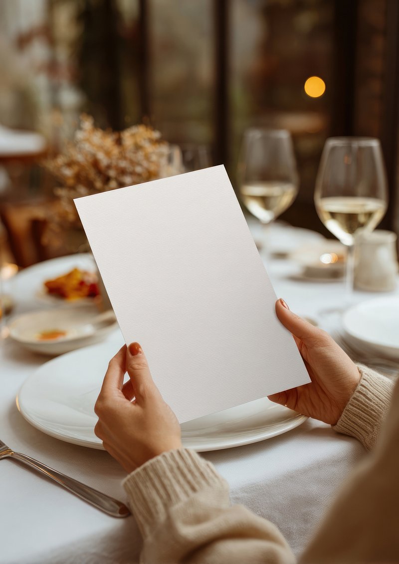 Blank menu in elegant restaurant setting. https://www.rawpixel.com/image/23785608/blank-menu-elegant-restaurant-settingView license
