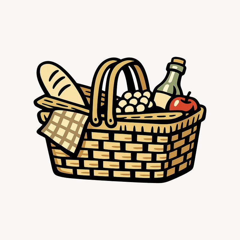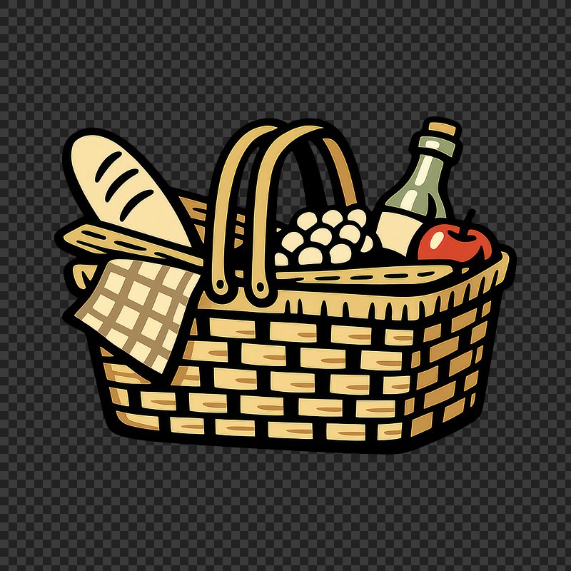 PNG Picnic basket with delicious essentials. https://www.rawpixel.com/image/25575502/png-picnic-basket-with-delicious-essentialsView license