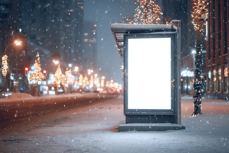 Winter city illuminated advertisement display. https://www.rawpixel.com/image/24202655/winter-city-illuminated-advertisement-displayView license