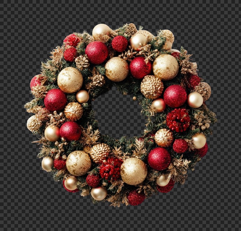 PNG Festive holiday wreath decoration. https://www.rawpixel.com/image/22939610/png-festive-holiday-wreath-decorationView license
