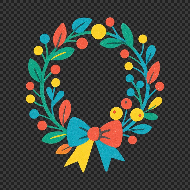 PNG Colorful festive wreath illustration. https://www.rawpixel.com/image/21805733/png-colorful-festive-wreath-illustrationView license