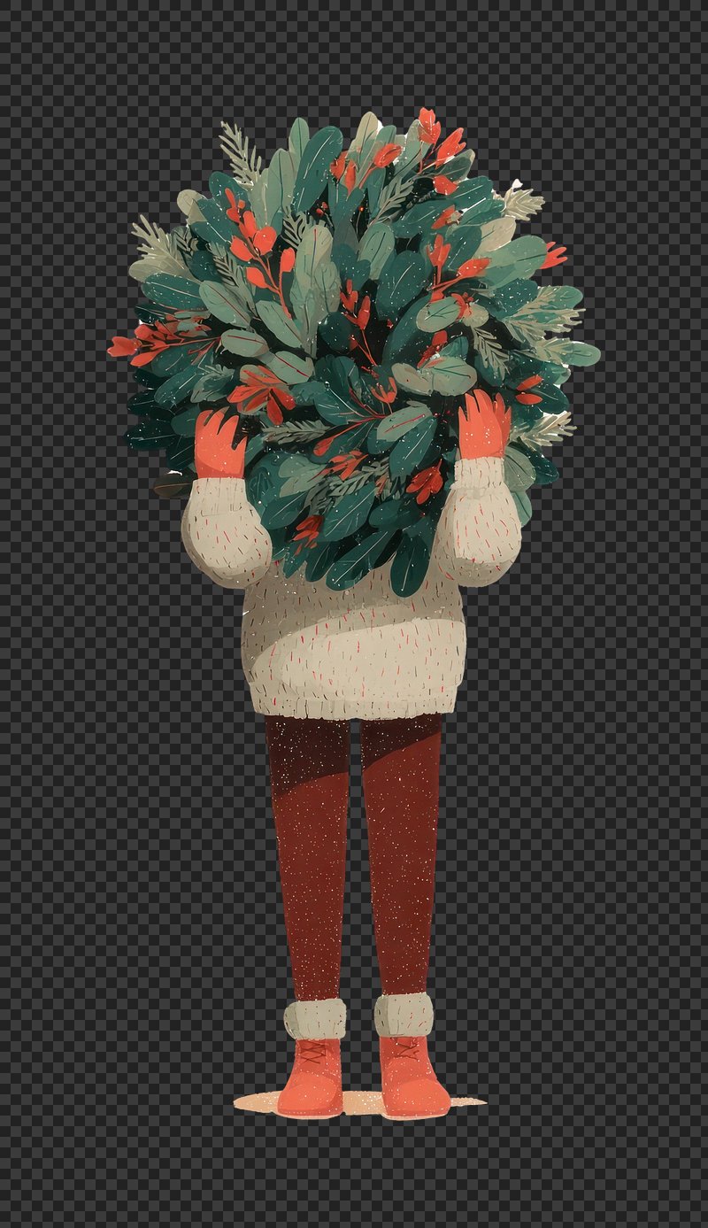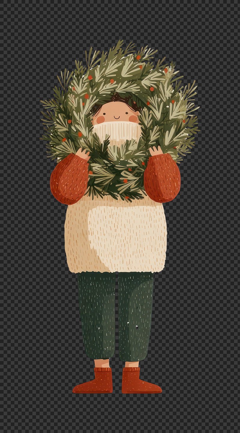 PNG Cozy winter character holding wreath. https://www.rawpixel.com/image/22940412/png-cozy-winter-character-holding-wreathView license