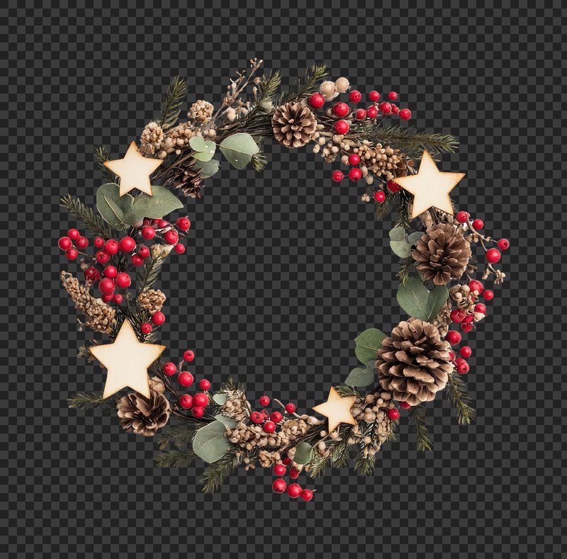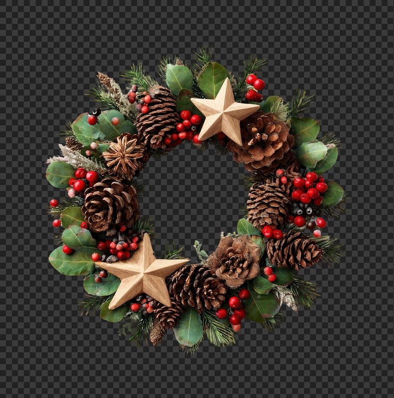 PNG Festive wreath with natural elements. https://www.rawpixel.com/image/22942298/png-festive-wreath-with-natural-elementsView license