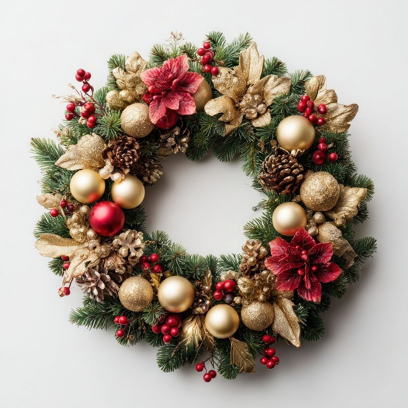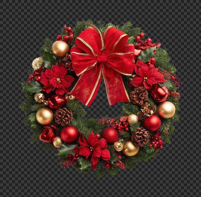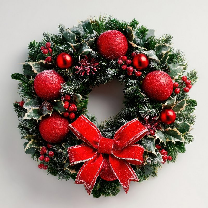 Festive wreath with red decorations. https://www.rawpixel.com/image/22692677/festive-wreath-with-red-decorationsView license