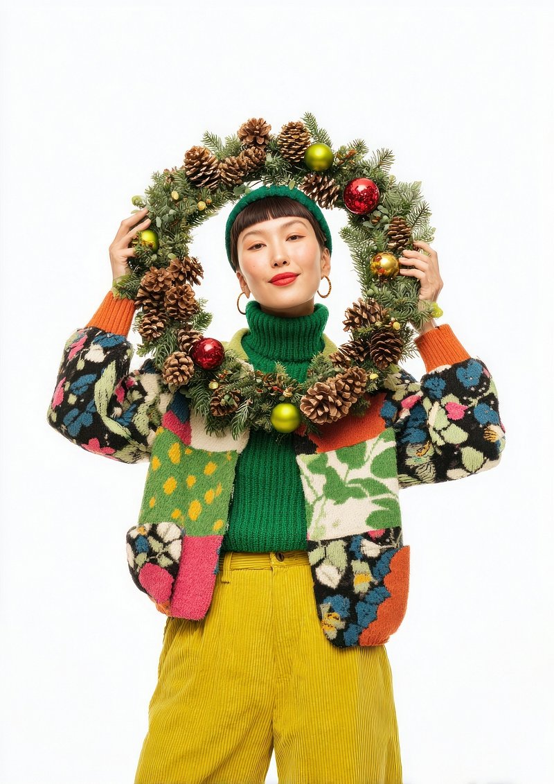 Festive fashion with holiday wreath. https://www.rawpixel.com/image/20561293/festive-fashion-with-holiday-wreathView license