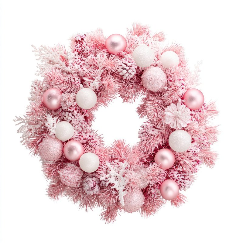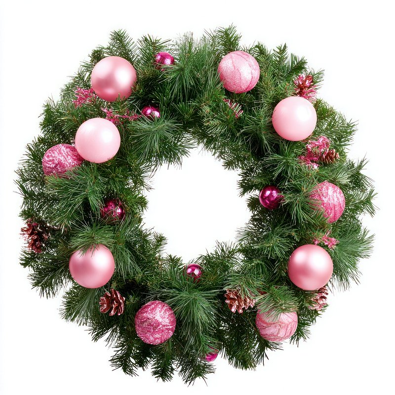 Festive wreath with pink ornaments. https://www.rawpixel.com/image/22018003/festive-wreath-with-pink-ornamentsView license