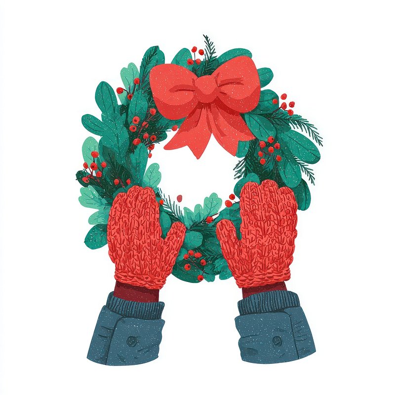 Festive wreath with red mittens. https://www.rawpixel.com/image/22020497/festive-wreath-with-red-mittensView license