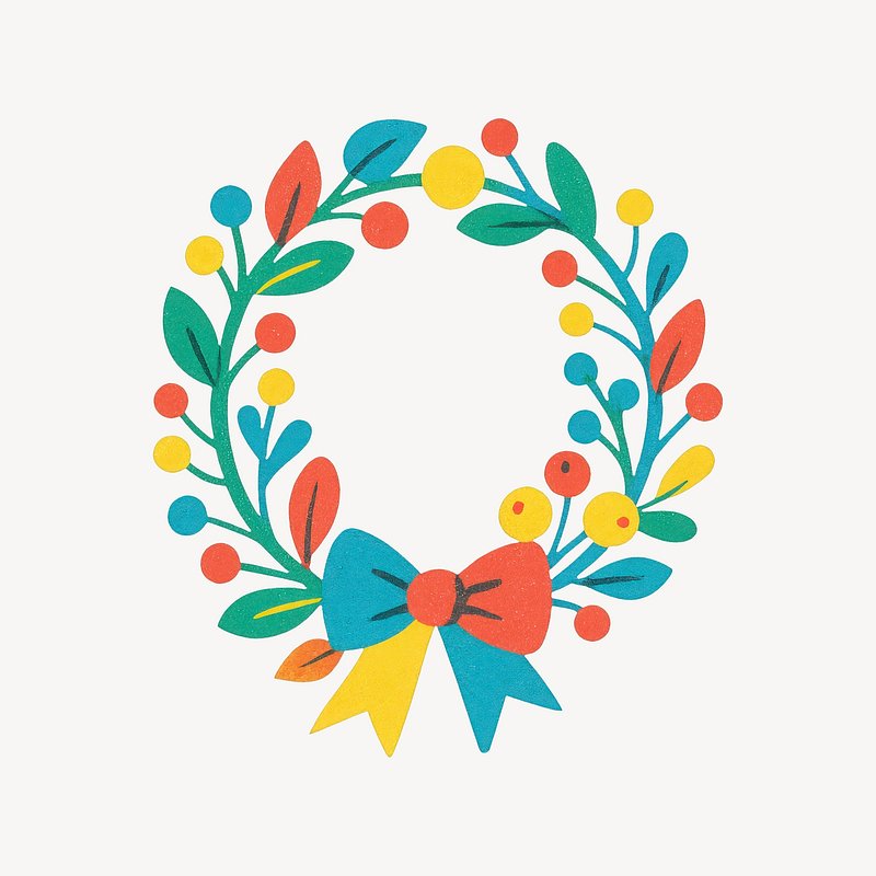 Colorful festive wreath illustration. https://www.rawpixel.com/image/22327580/colorful-festive-wreath-illustrationView license