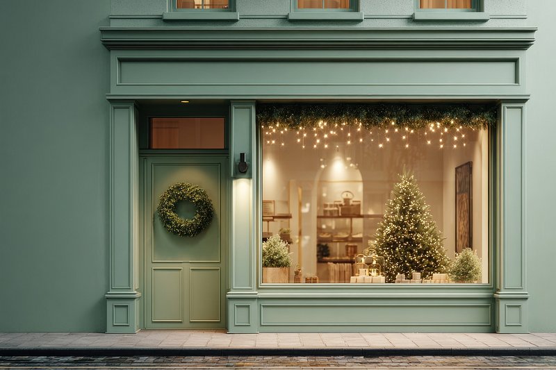 Festive storefront with Christmas decorations. https://www.rawpixel.com/image/23766703/festive-storefront-with-christmas-decorationsView license