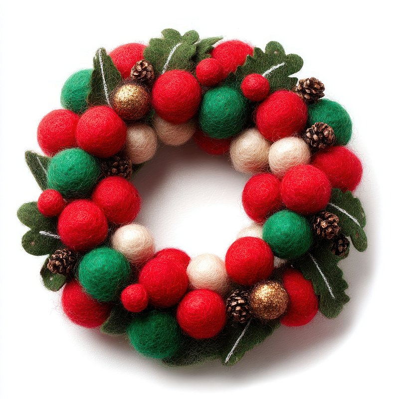 Festive felt ball Christmas wreath https://www.rawpixel.com/image/22769829/festive-felt-ball-christmas-wreathView license
