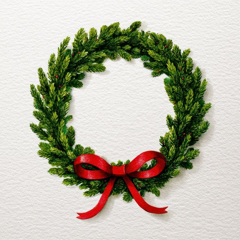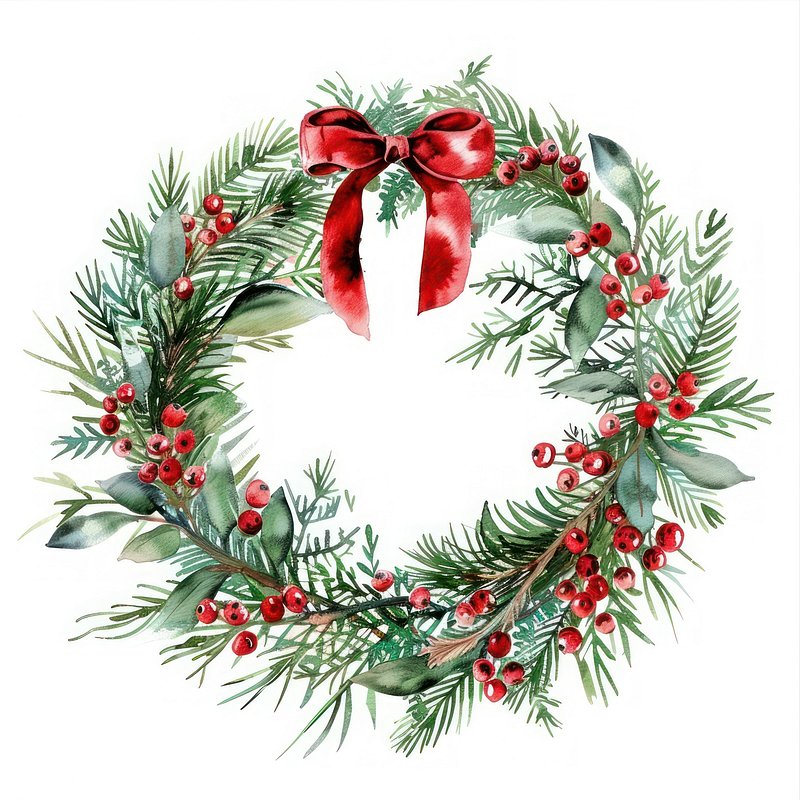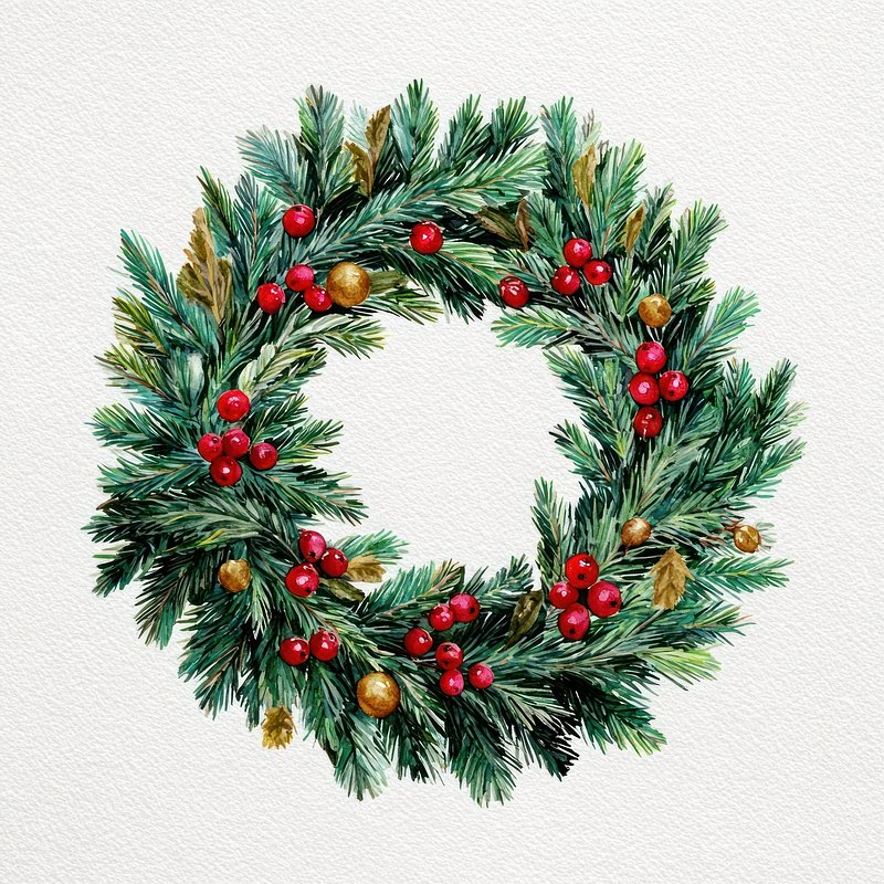 Festive evergreen wreath illustration. https://www.rawpixel.com/image/23275022/festive-evergreen-wreath-illustrationView license