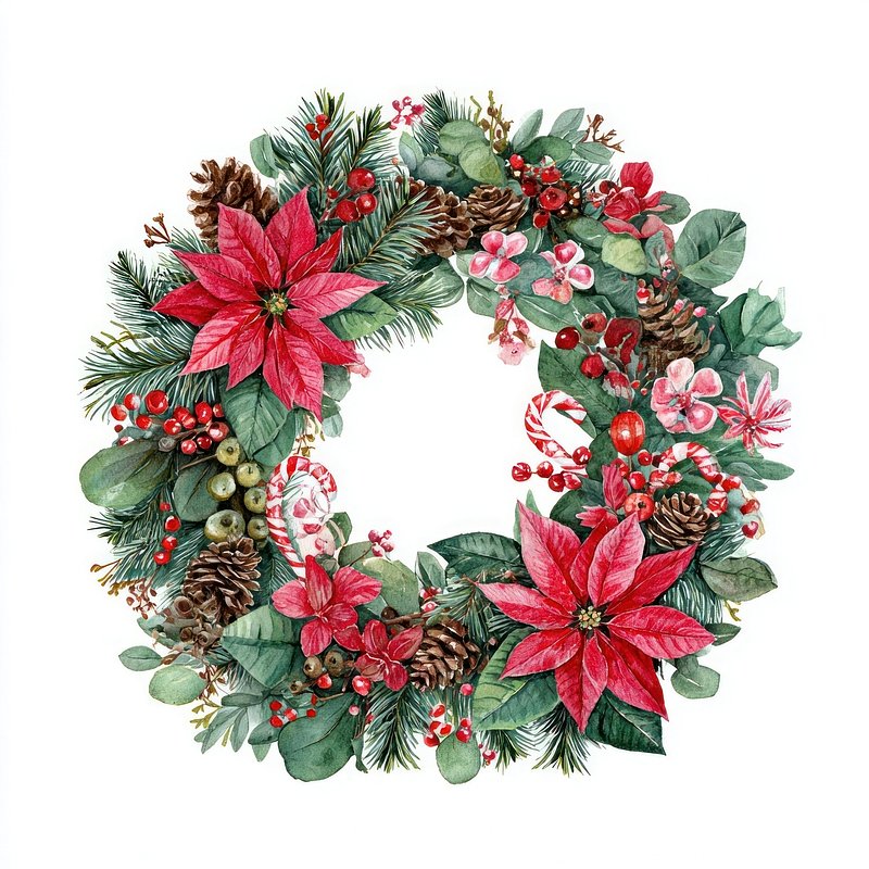 Festive floral Christmas wreath illustration. https://www.rawpixel.com/image/22047106/festive-floral-christmas-wreath-illustrationView license