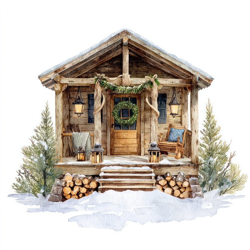 Cozy winter cabin illustration. https://www.rawpixel.com/image/23275269/cozy-winter-cabin-illustrationView license