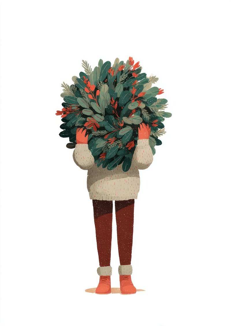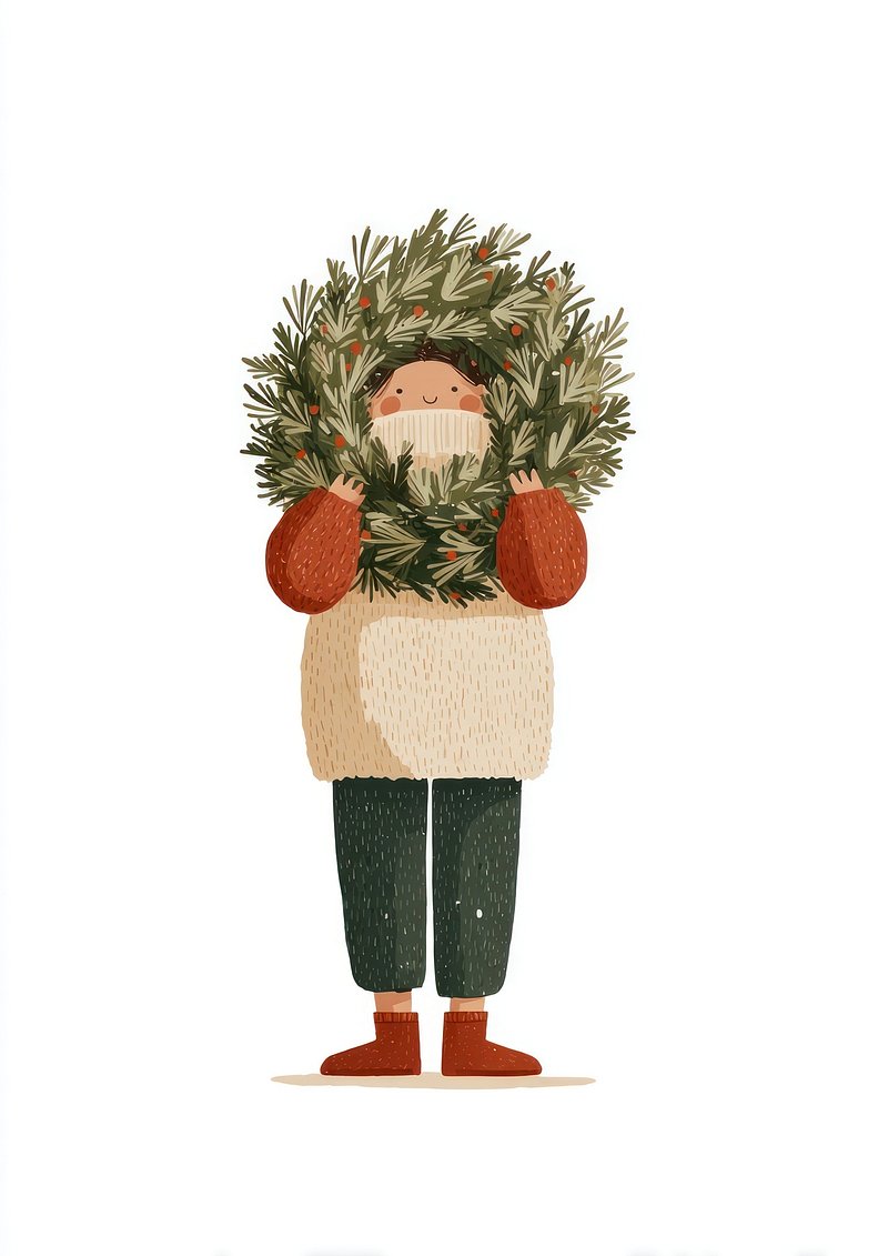 Cozy winter character holding wreath. https://www.rawpixel.com/image/22187546/cozy-winter-character-holding-wreathView license