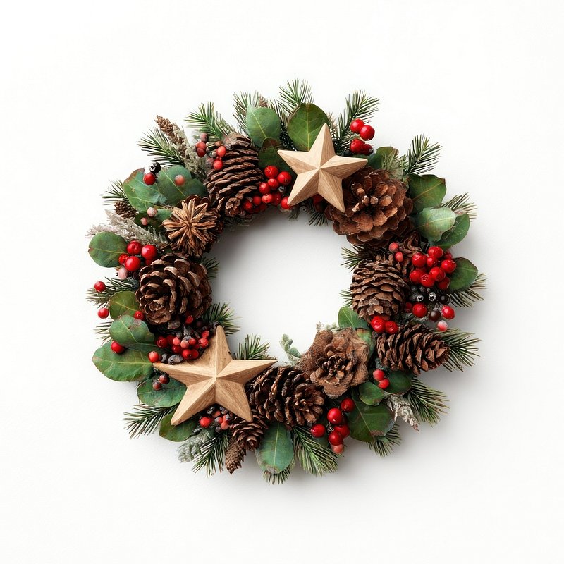 Festive wreath with natural elements. https://www.rawpixel.com/image/22046095/festive-wreath-with-natural-elementsView license