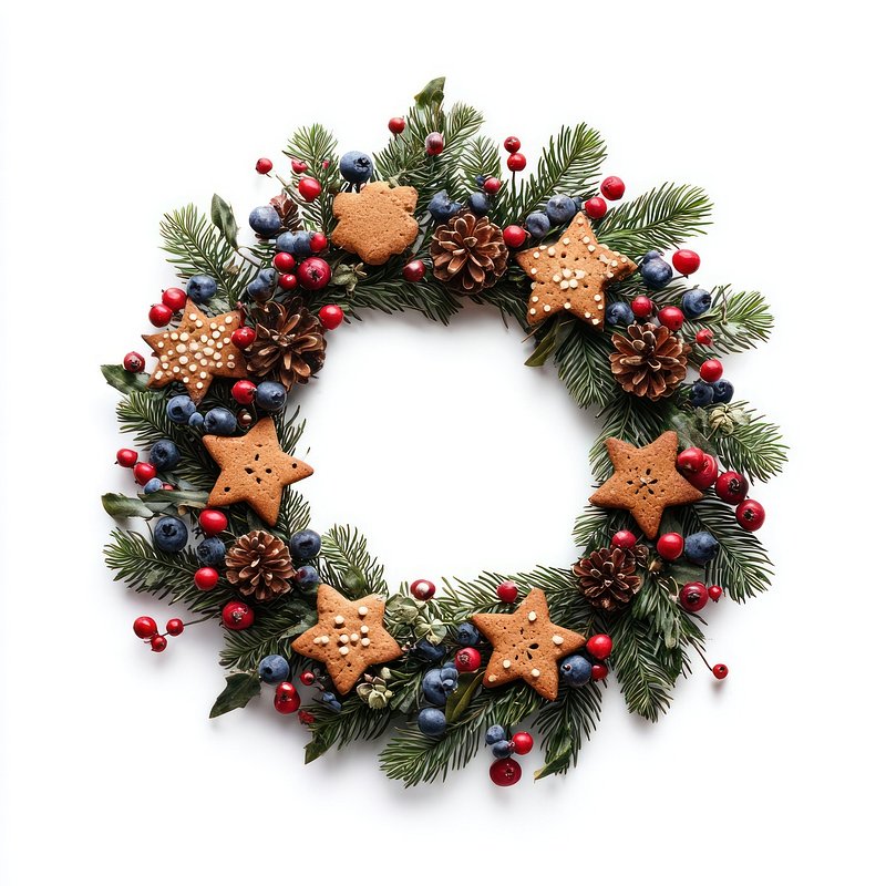Festive wreath with gingerbread cookies. https://www.rawpixel.com/image/23278538/festive-wreath-with-gingerbread-cookiesView license