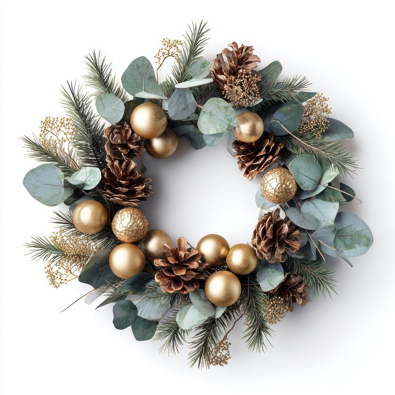 Festive wreath with golden accents. https://www.rawpixel.com/image/21832781/festive-wreath-with-golden-accentsView license
