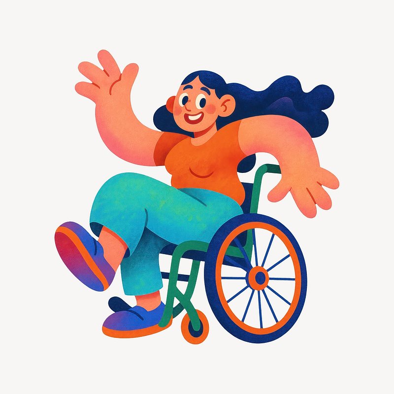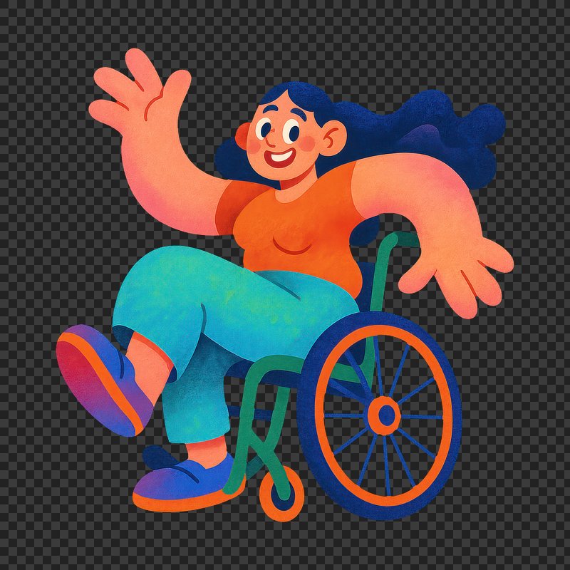 PNG Cheerful woman in wheelchair illustration. https://www.rawpixel.com/image/21420513/png-cheerful-woman-wheelchair-illustrationView license