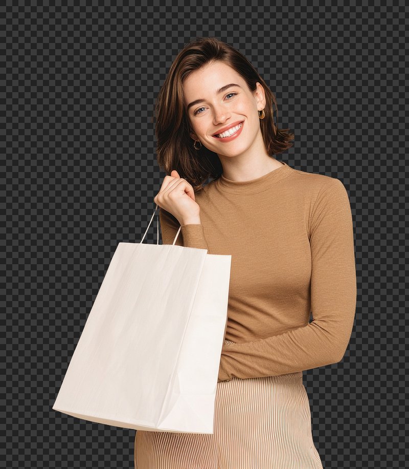 PNG Smiling woman holding shopping bag. https://www.rawpixel.com/image/24018153/png-smiling-woman-holding-shopping-bagView license