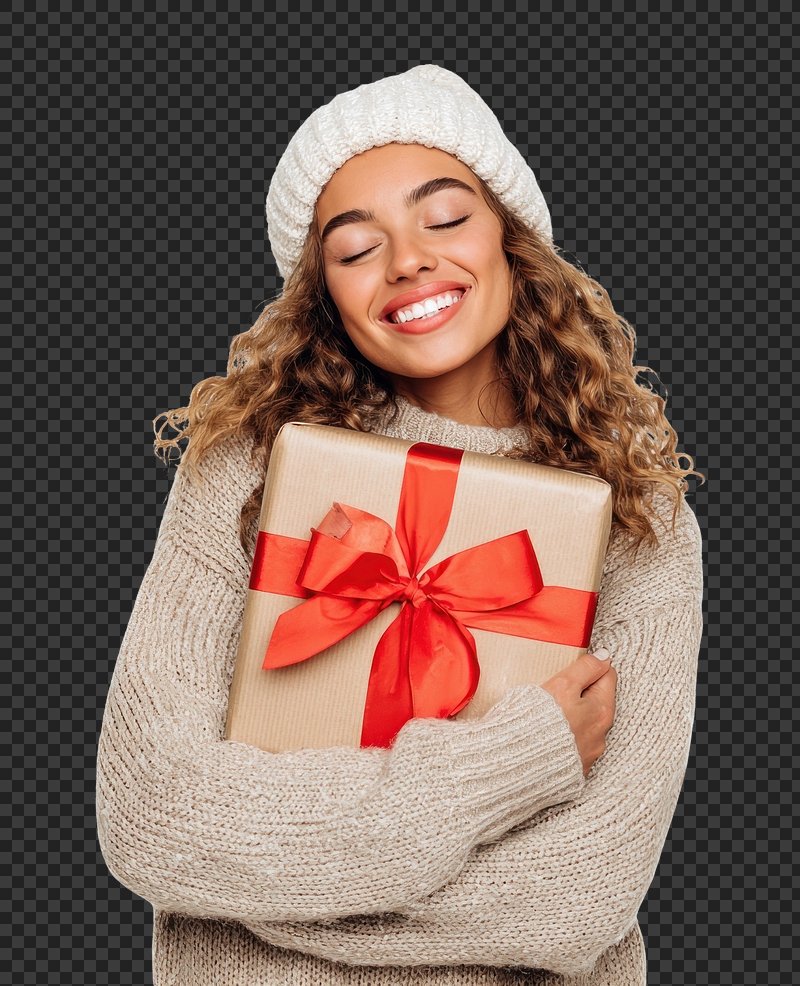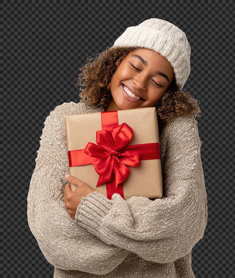 PNG Joyful woman hugging gift https://www.rawpixel.com/image/24019905/png-joyful-woman-hugging-giftView license
