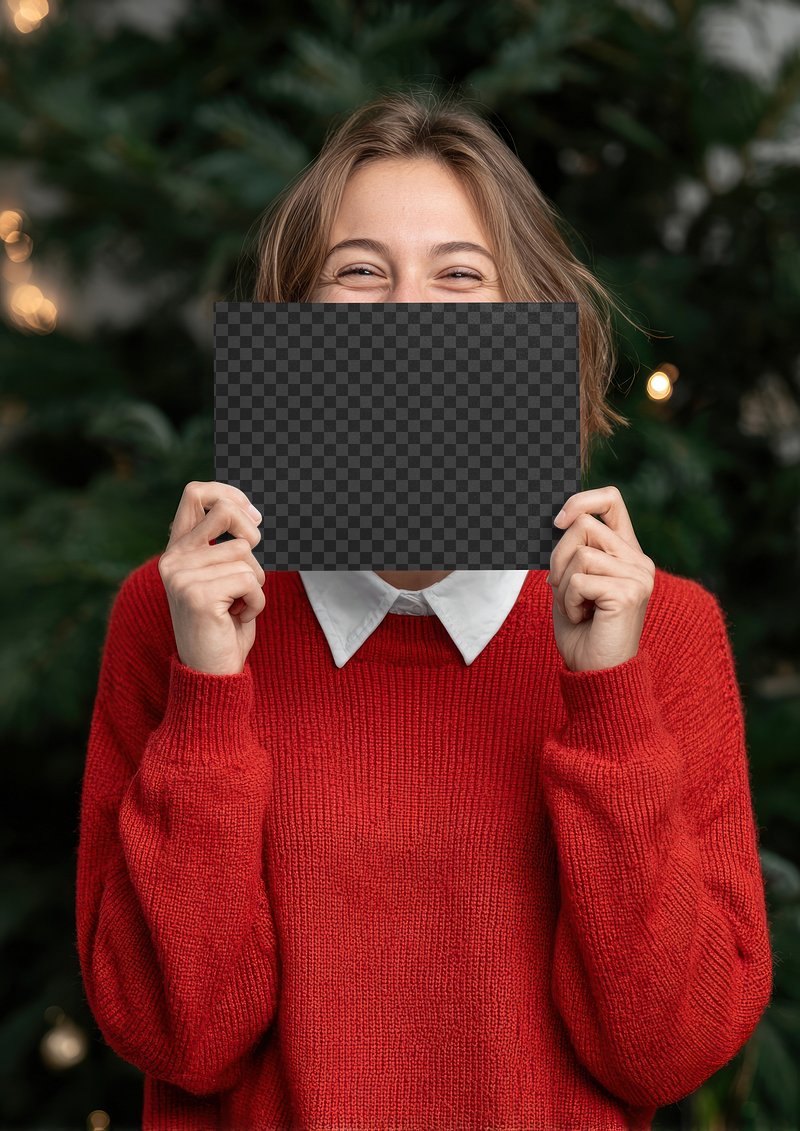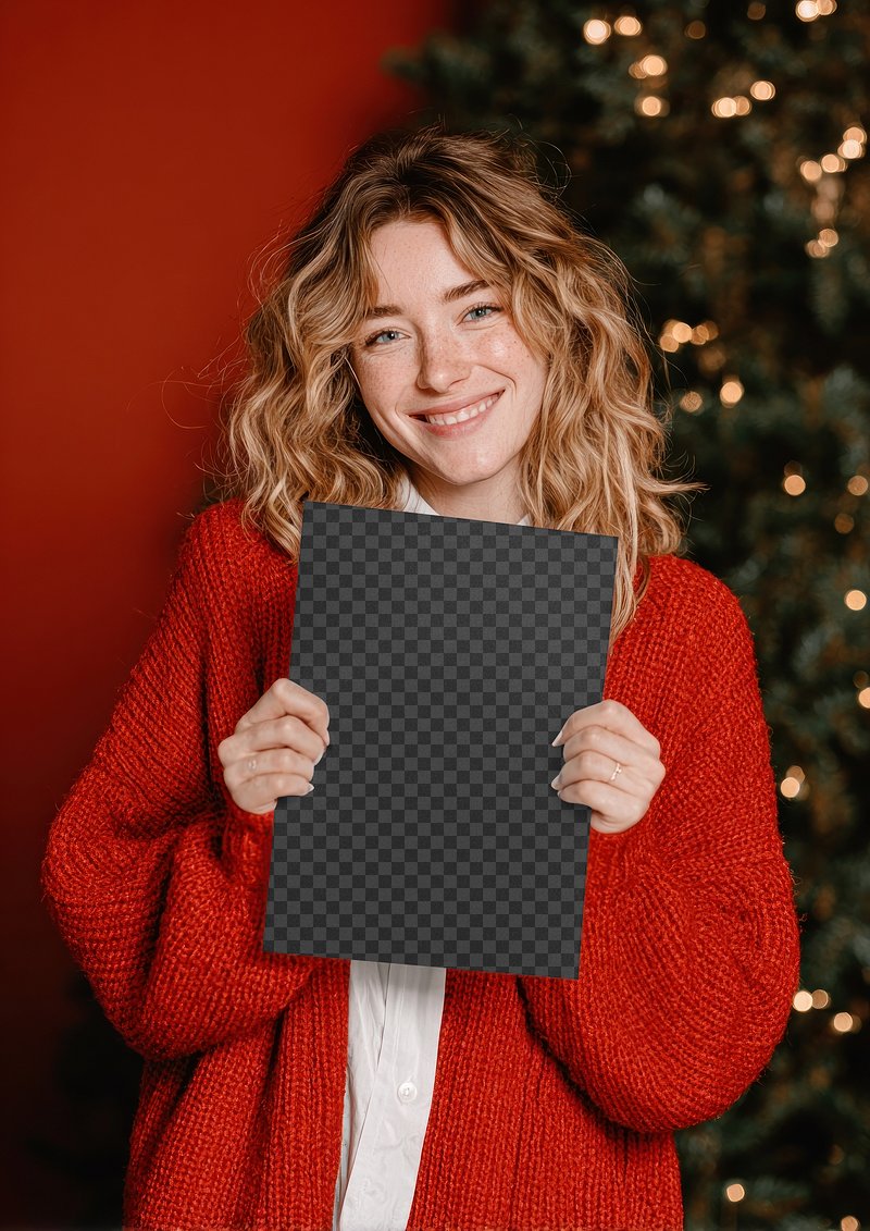 Festive mockup with smiling woman png, transparent design https://www.rawpixel.com/image/24161195/festive-mockup-with-smiling-woman-png-transparent-designView license
