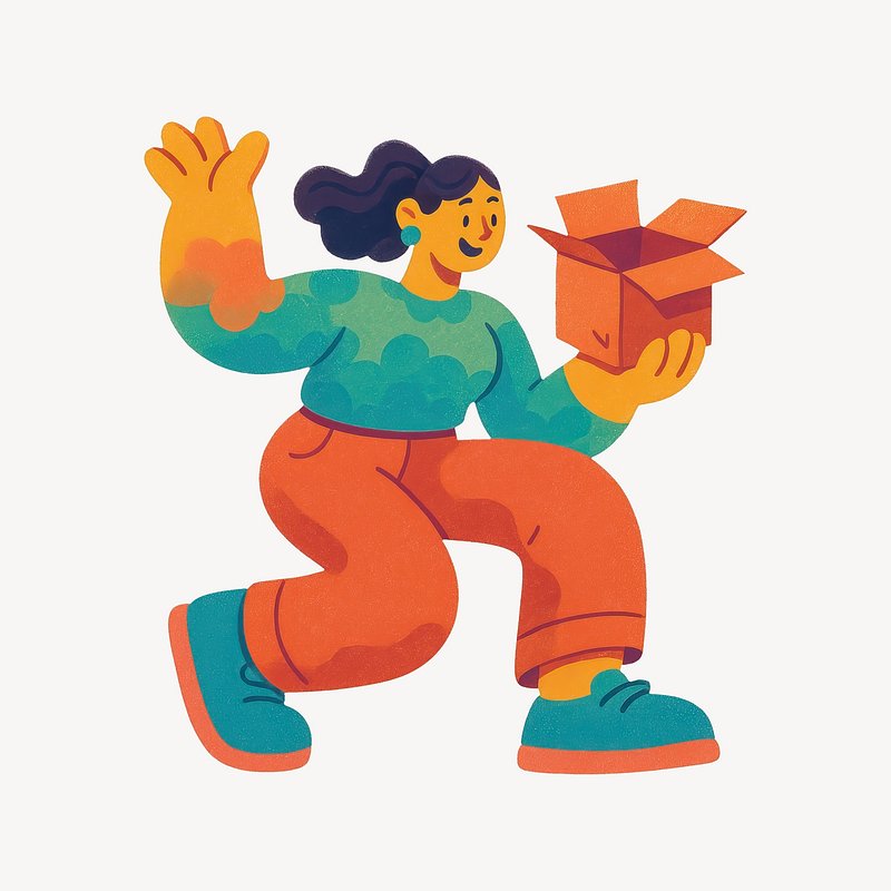Colorful cartoon delivery person https://www.rawpixel.com/image/21791478/colorful-cartoon-delivery-personView license