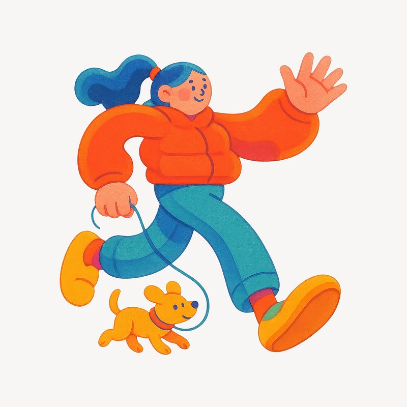 Colorful cartoon person walking dog https://www.rawpixel.com/image/21795406/colorful-cartoon-person-walking-dogView license