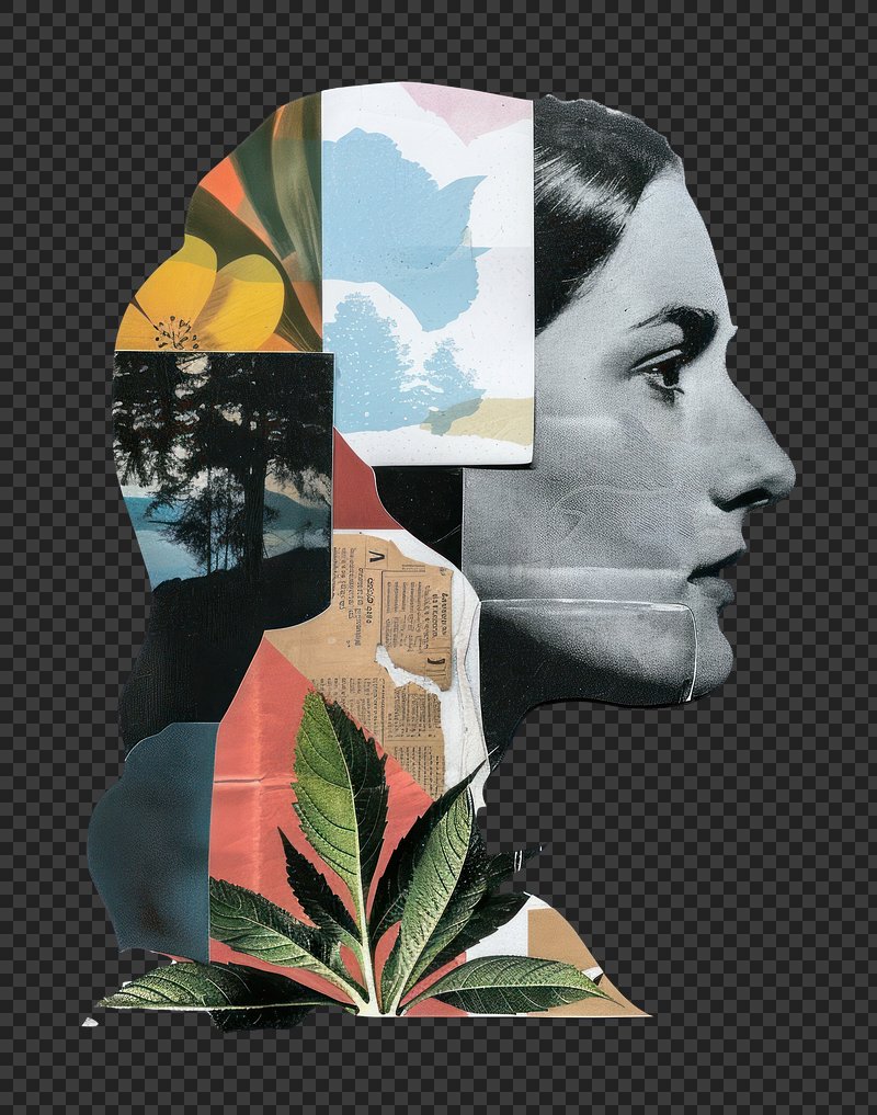 PNG Artistic collage silhouette profile. https://www.rawpixel.com/image/25989387/png-artistic-collage-silhouette-profileView license