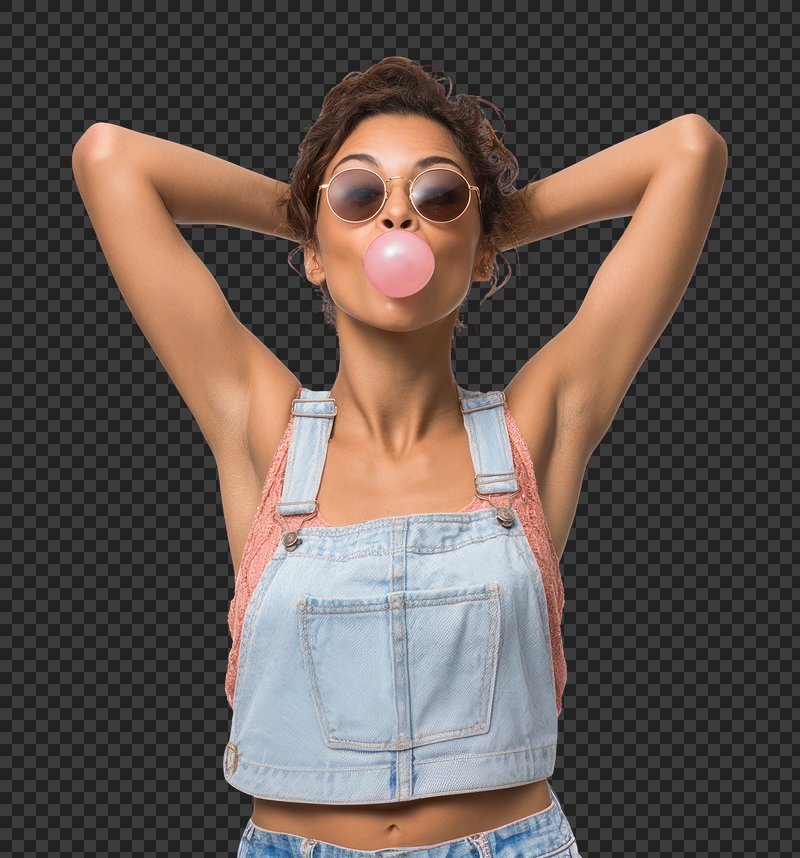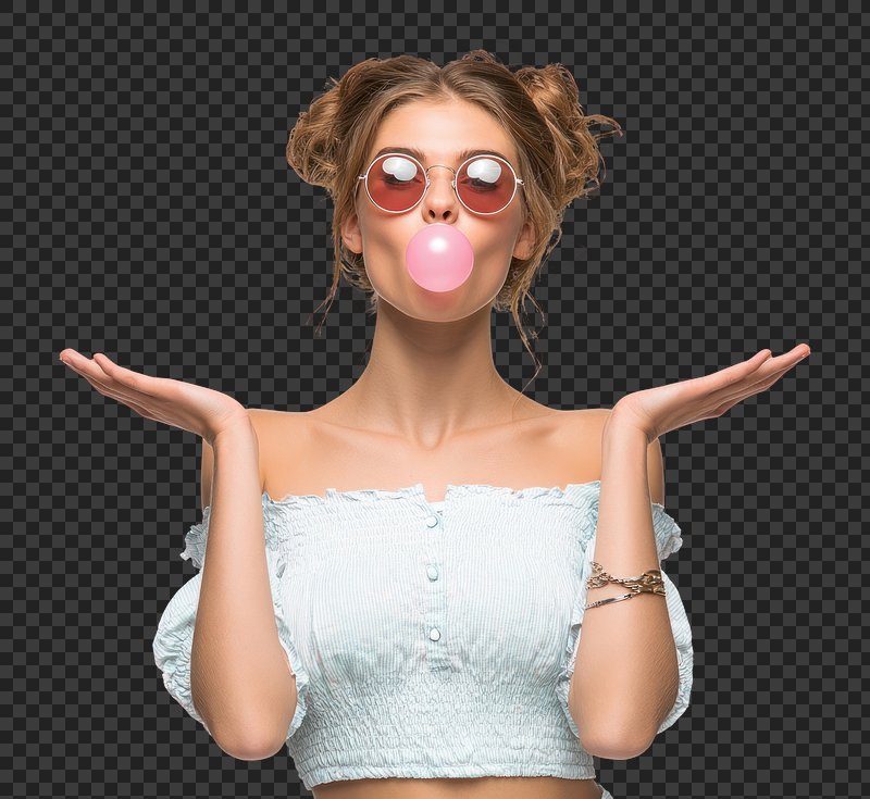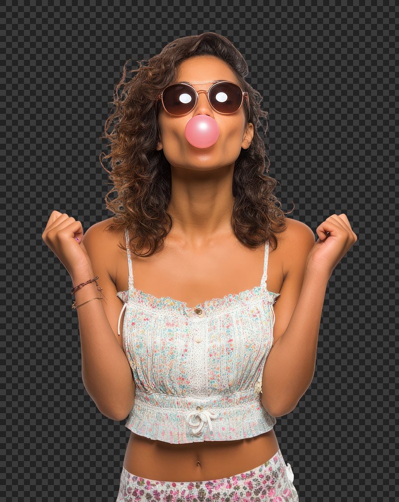 PNG Playful young woman blowing bubblegum. https://www.rawpixel.com/image/25976791/png-playful-young-woman-blowing-bubblegumView license