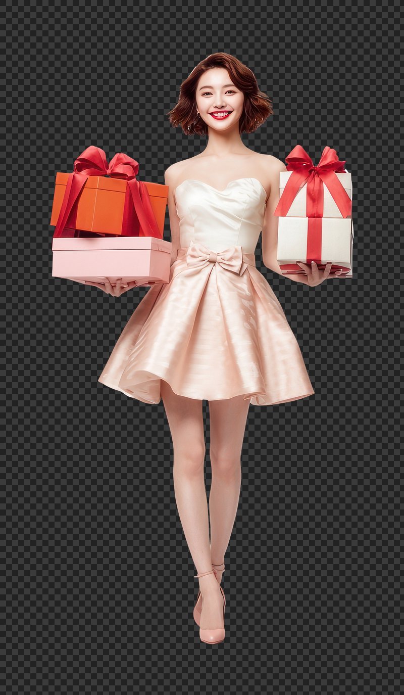 PNG Elegant woman holding gift boxes. https://www.rawpixel.com/image/20886580/png-elegant-woman-holding-gift-boxesView license