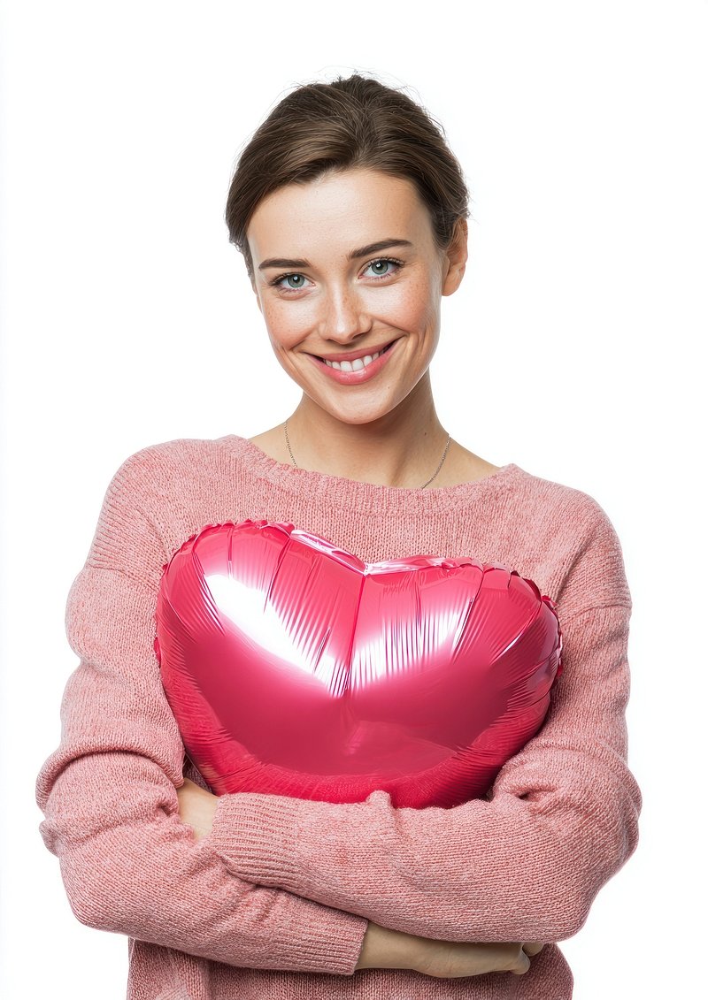 Woman hugging heart balloon https://www.rawpixel.com/image/20514775/woman-hugging-heart-balloonView license