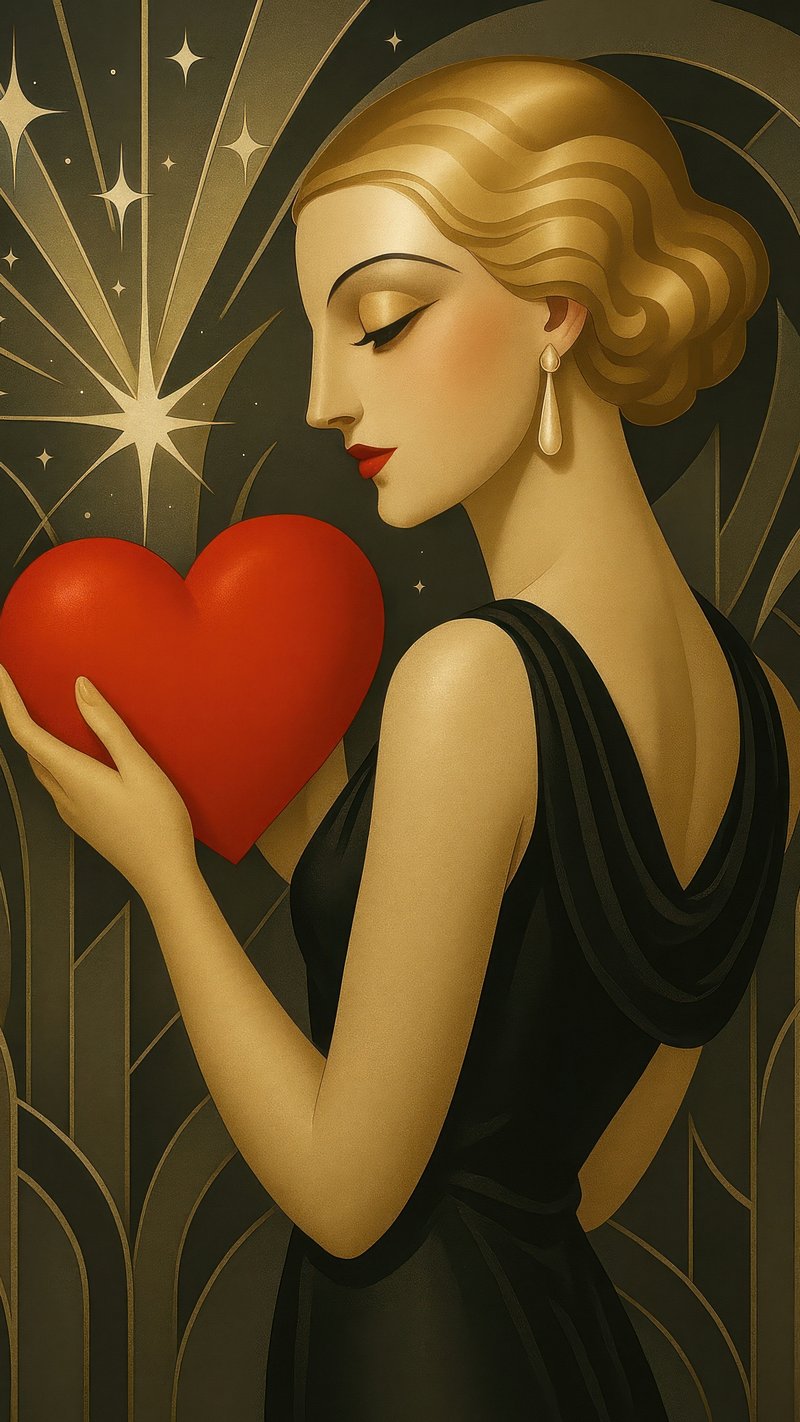 Elegant art deco woman holding heart mobile wallpaper https://www.rawpixel.com/image/21298915/elegant-art-deco-woman-holding-heart-mobile-wallpaperView license