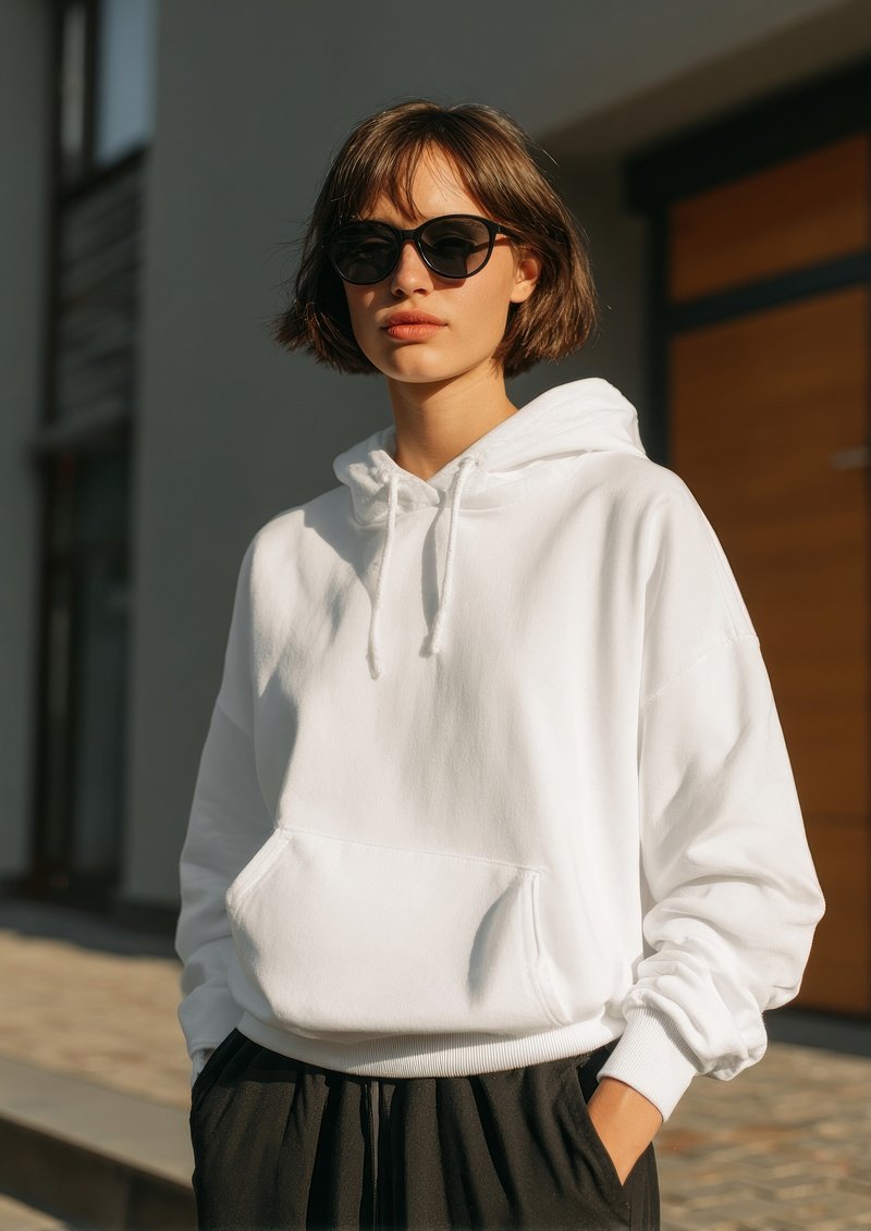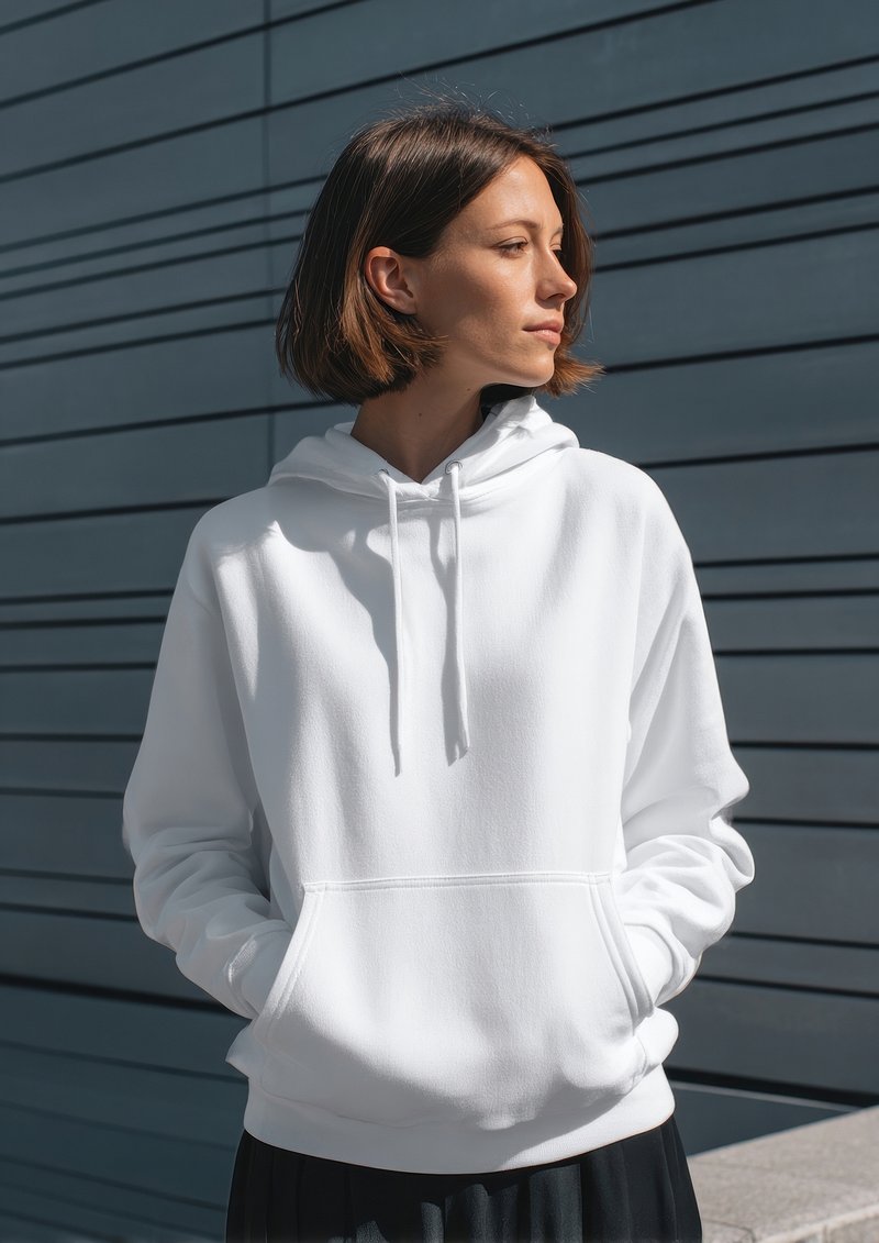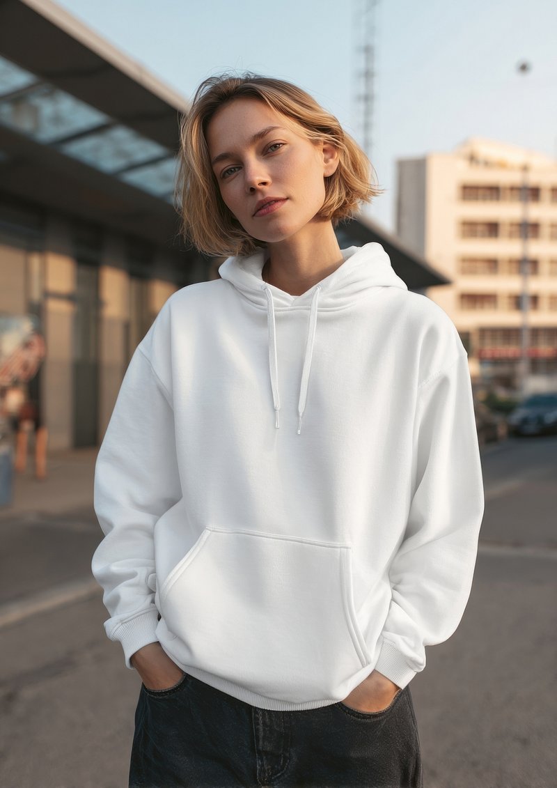Stylish woman in white hoodie. https://www.rawpixel.com/image/23796259/stylish-woman-white-hoodieView license
