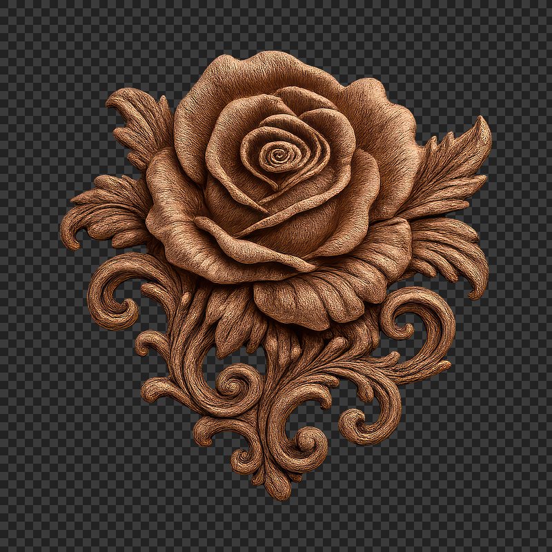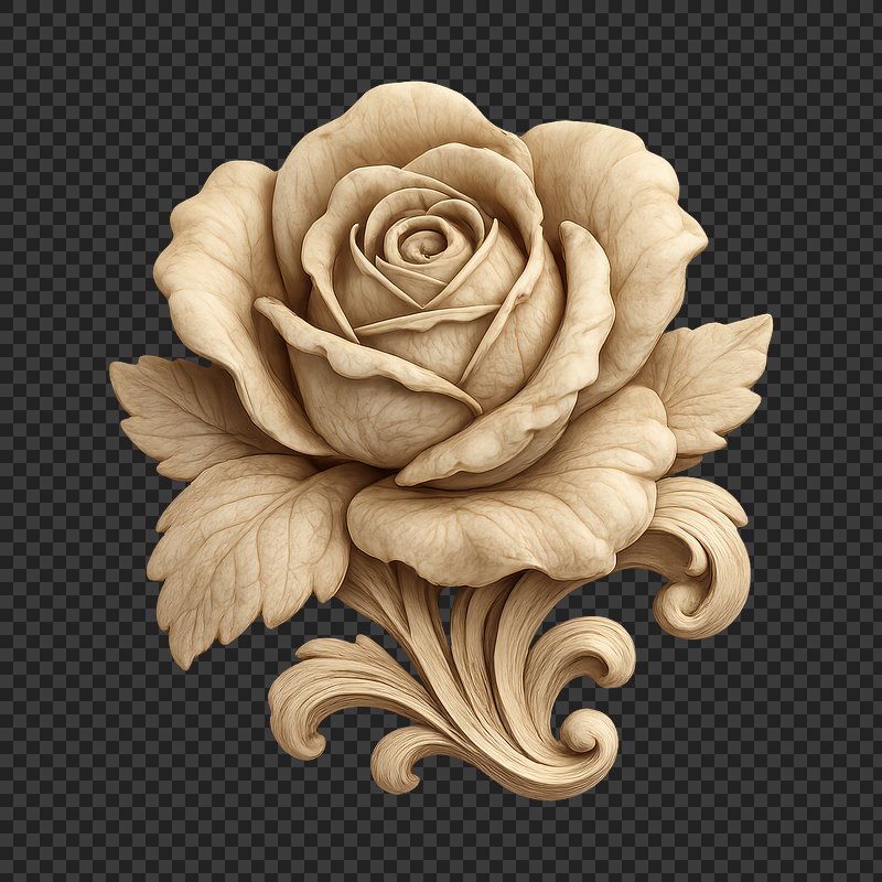PNG Elegant carved wooden rose design. https://www.rawpixel.com/image/24334185/png-elegant-carved-wooden-rose-designView license