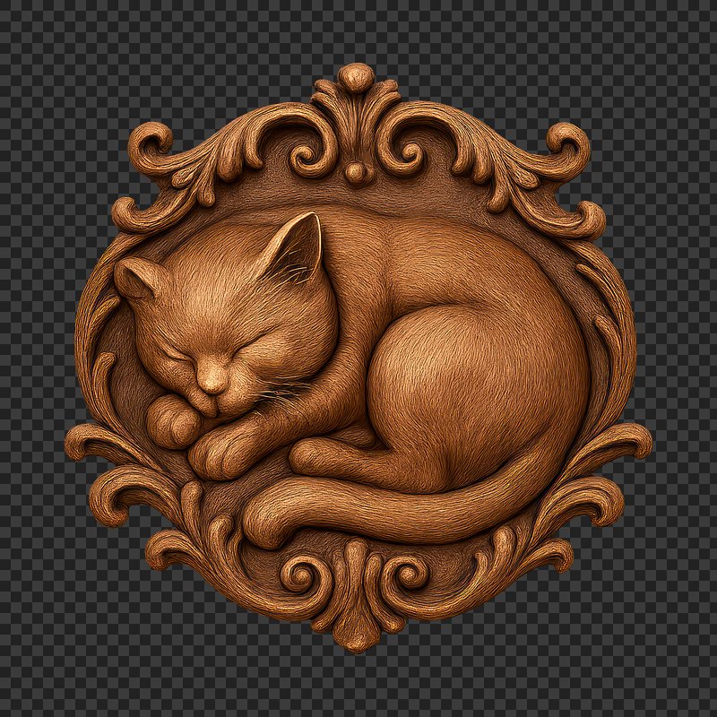 PNG Ornate carved sleeping cat illustration. https://www.rawpixel.com/image/24325058/png-ornate-carved-sleeping-cat-illustrationView license