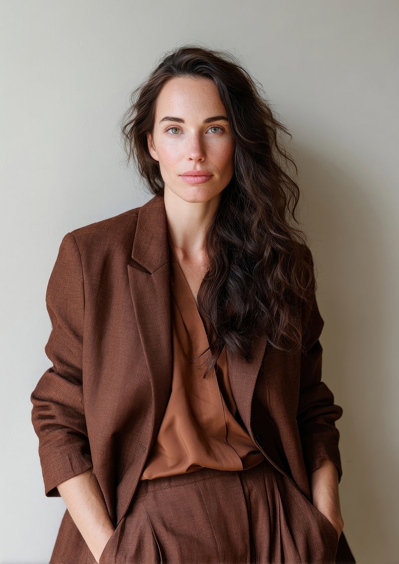 Elegant woman in brown suit https://www.rawpixel.com/image/25313374/elegant-woman-brown-suitView license