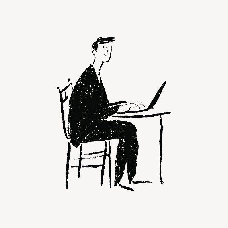 Minimalist sketch of person typing. https://www.rawpixel.com/image/25234476/minimalist-sketch-person-typingView license