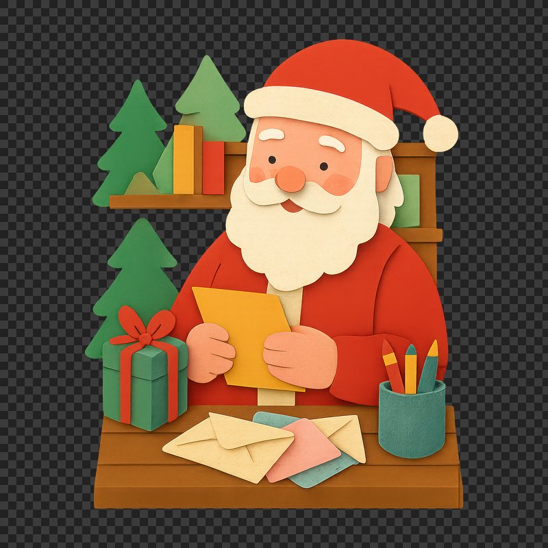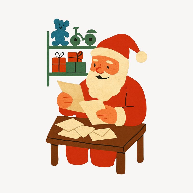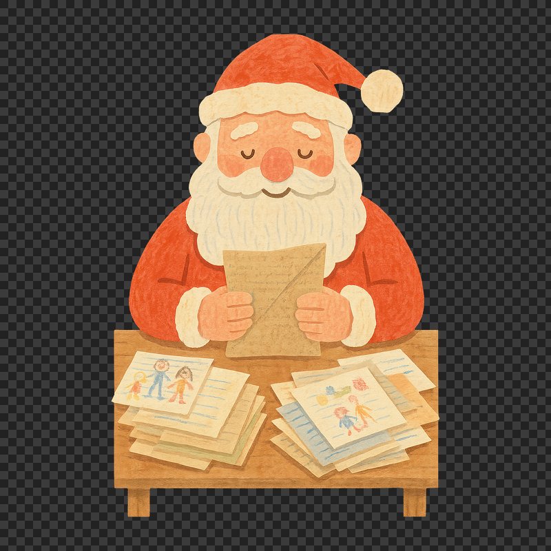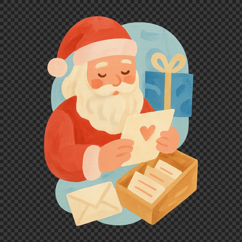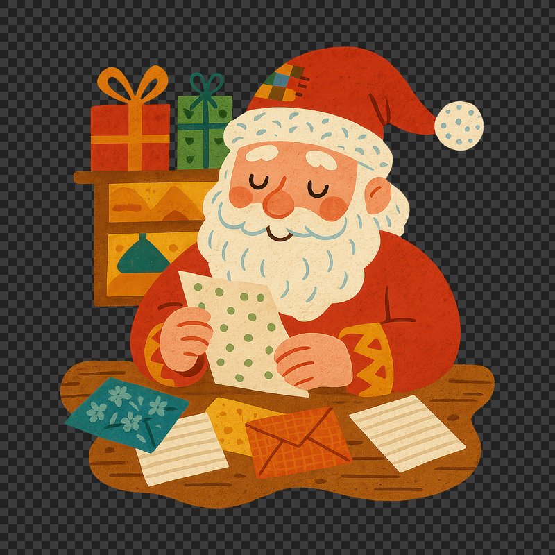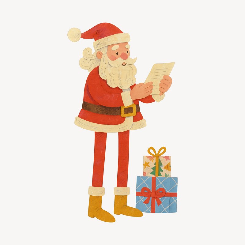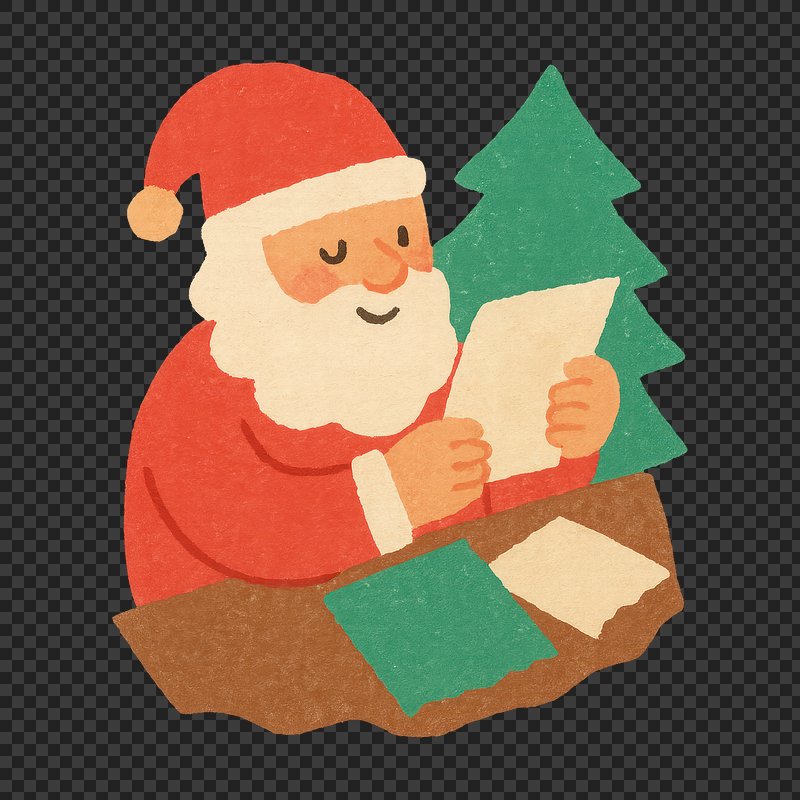 PNG Cute Santa reading Christmas letter. https://www.rawpixel.com/image/22922573/png-cute-santa-reading-christmas-letterView license