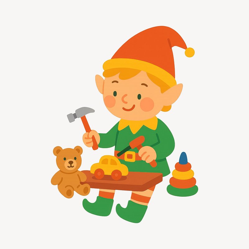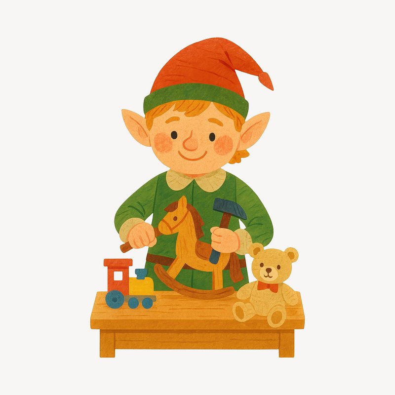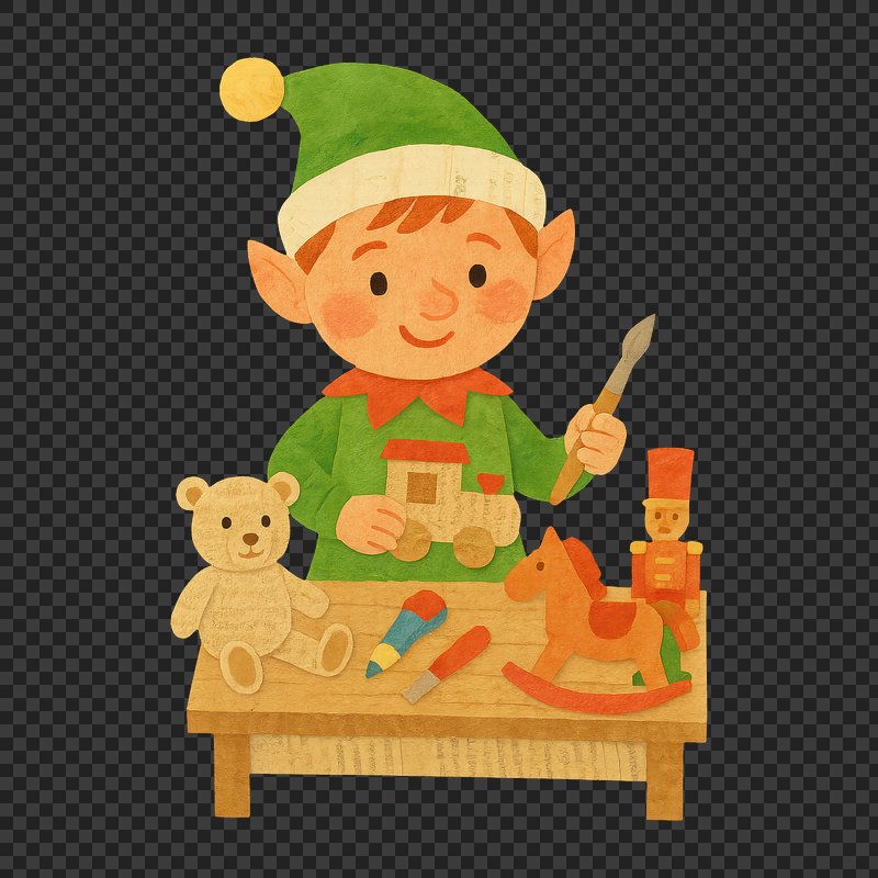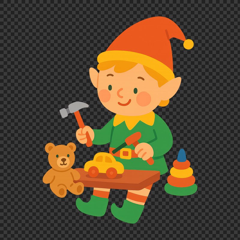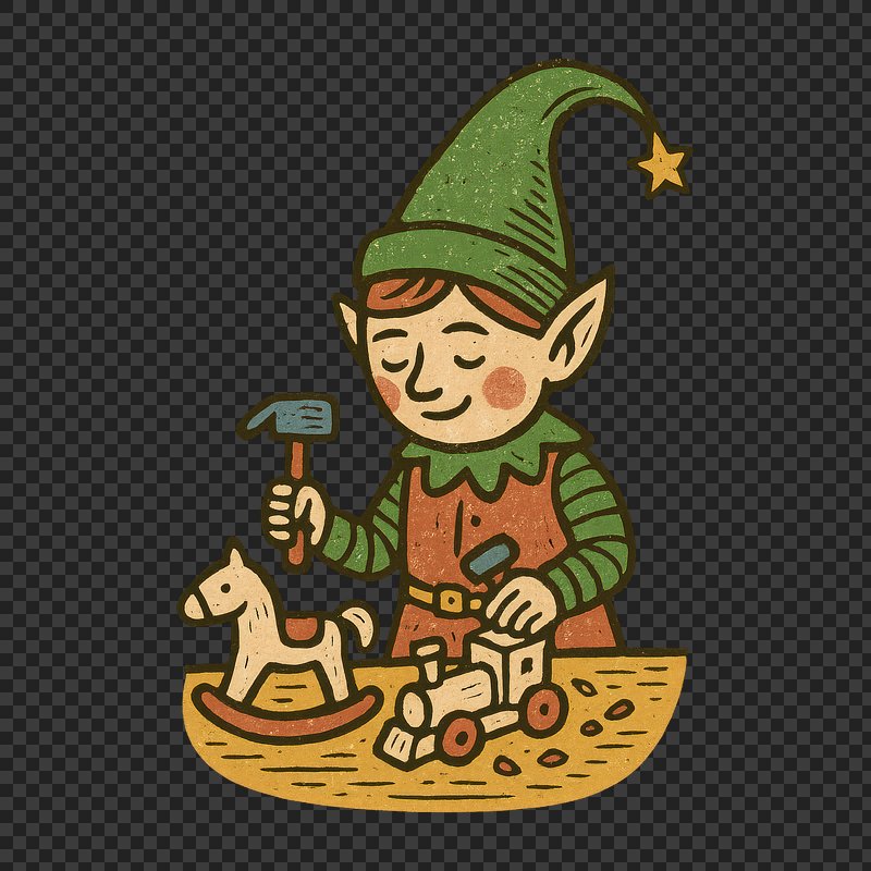 PNG Elf crafting toys for children. https://www.rawpixel.com/image/22091499/png-elf-crafting-toys-for-childrenView license