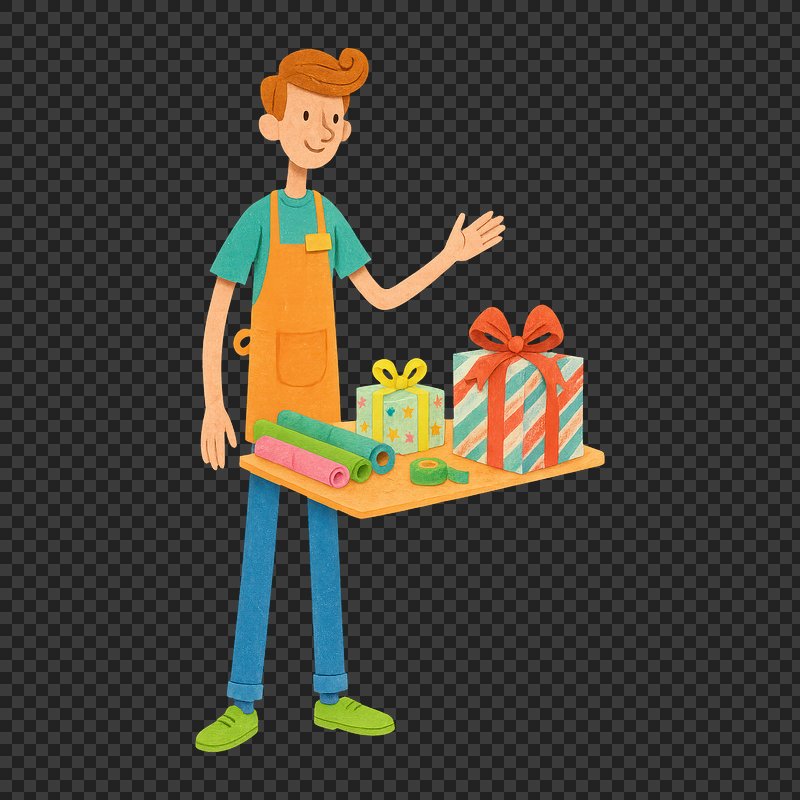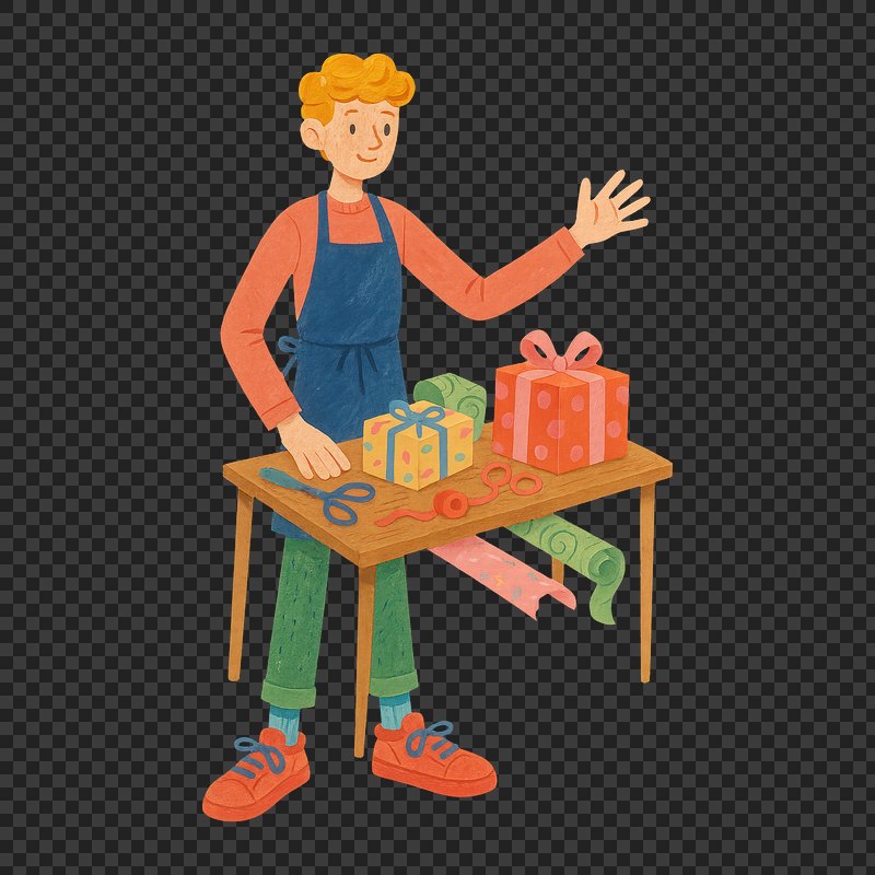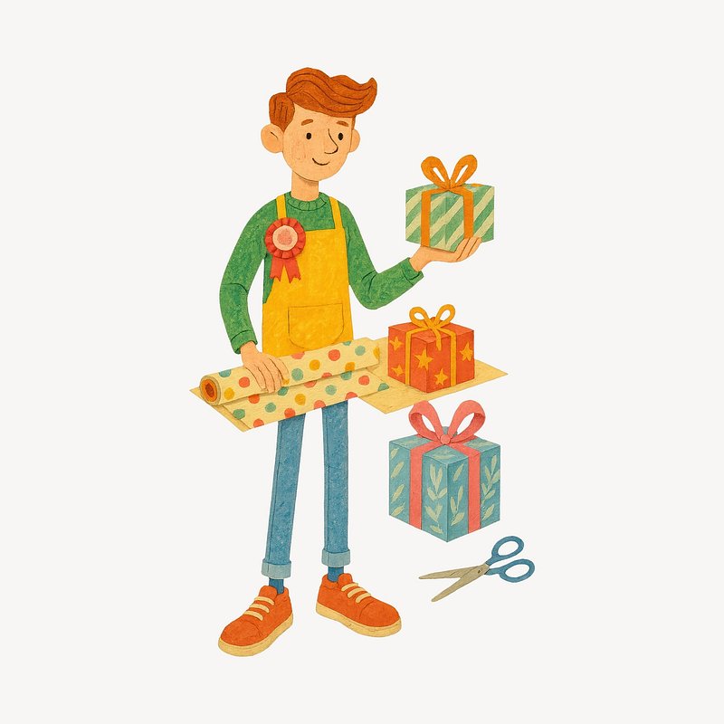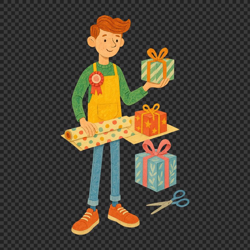 Gift wrapping cheerful cartoon character https://www.rawpixel.com/image/22905664/gift-wrapping-cheerful-cartoon-characterView license