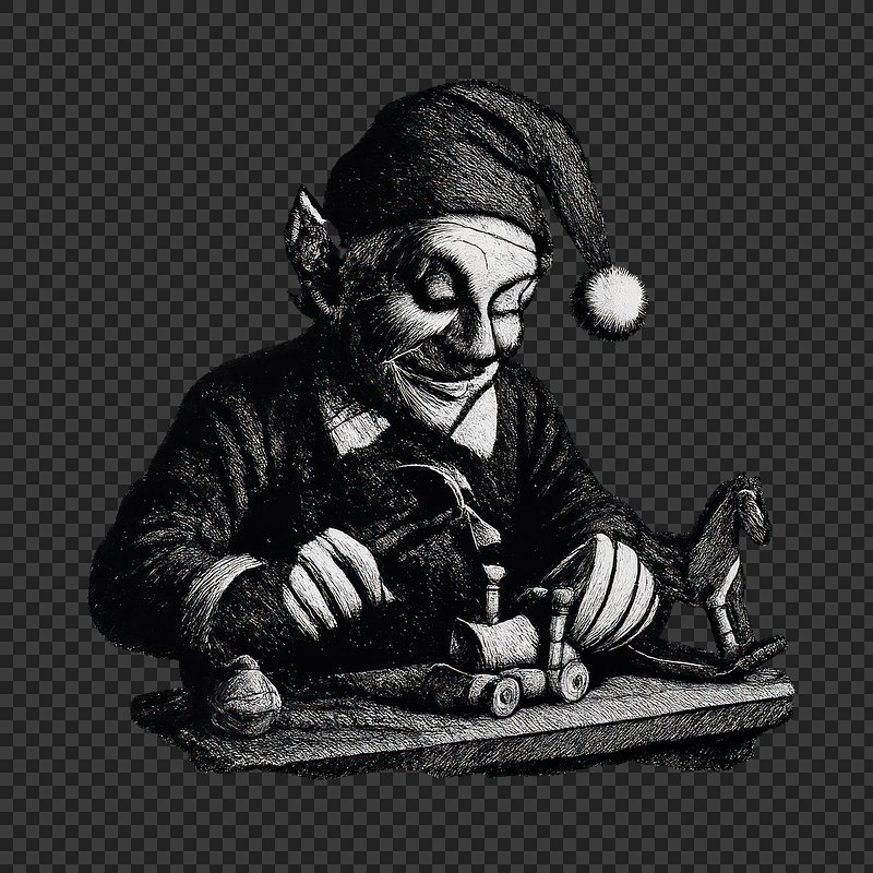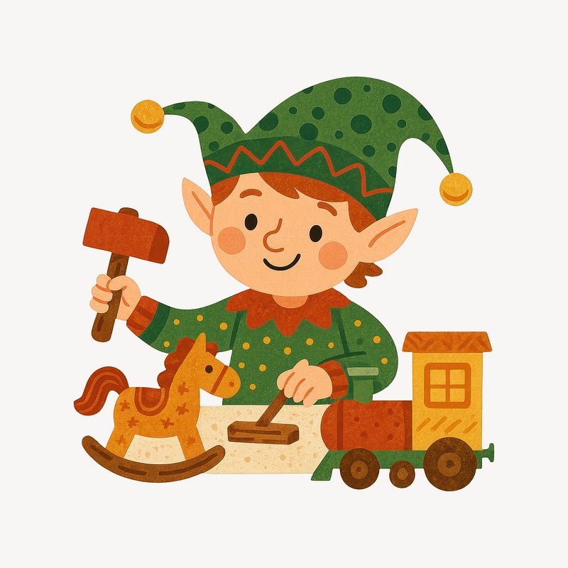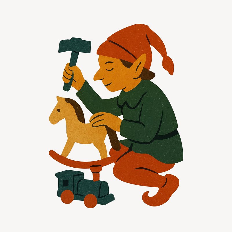 Whimsical elf crafting wooden toy. https://www.rawpixel.com/image/22910930/whimsical-elf-crafting-wooden-toyView license