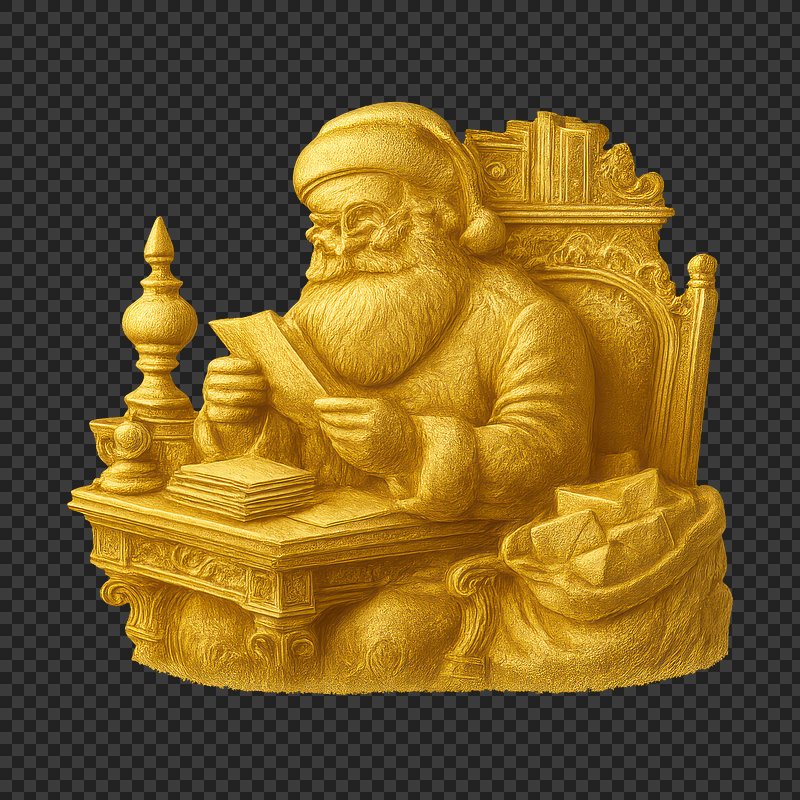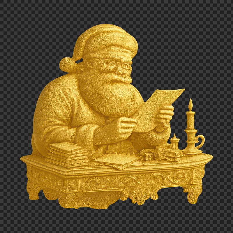 PNG Golden Santa reading letter sculpture. https://www.rawpixel.com/image/22067301/png-golden-santa-reading-letter-sculptureView license