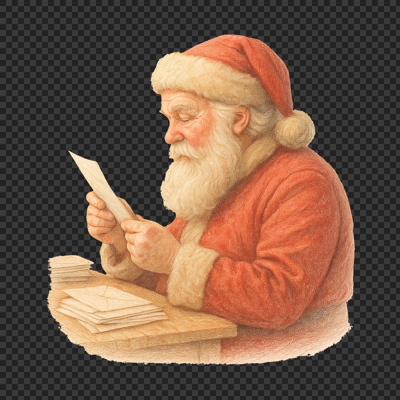PNG Santa reading heartfelt letters. https://www.rawpixel.com/image/22352273/png-santa-reading-heartfelt-lettersView license