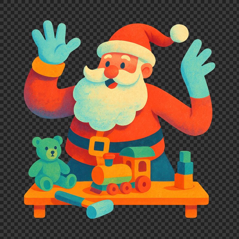 PNG Santa waving with toys https://www.rawpixel.com/image/21421083/png-santa-waving-with-toysView license
